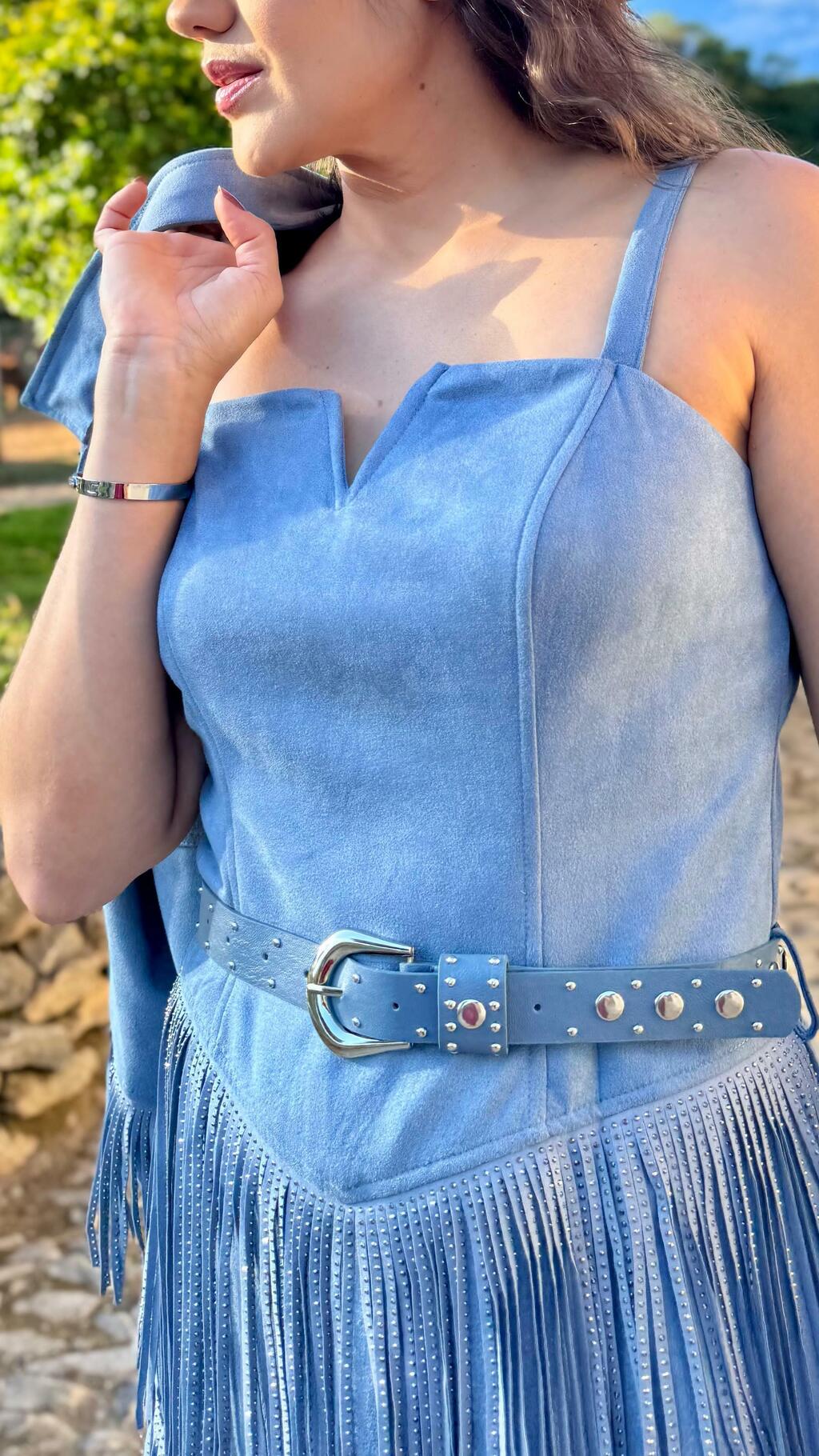 VESTIDO: Vestido Suede Franjas E Com Cinto